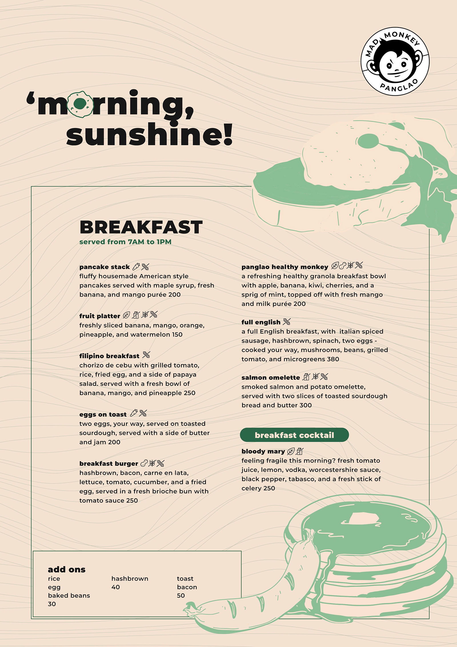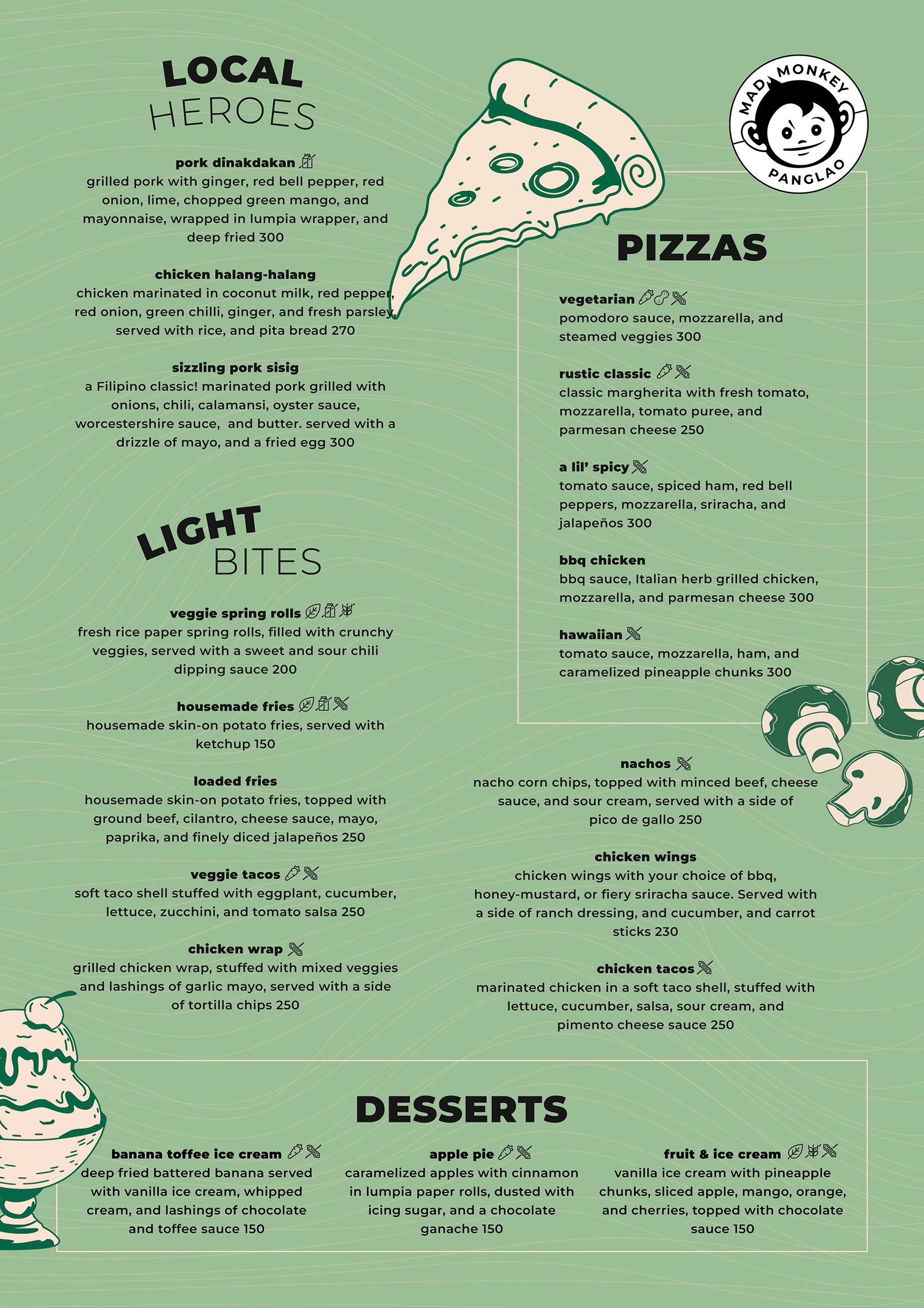 At Mad Monkey, we use only high-quality, fresh ingredients in every plate we serve you. With plenty of comfort food, local dishes, healthy meals, vegetarian + vegan options, and more delicious bites to help you recover after a day of adventuring (or to cure your hangovers), there’s something for everyone on our menu!
