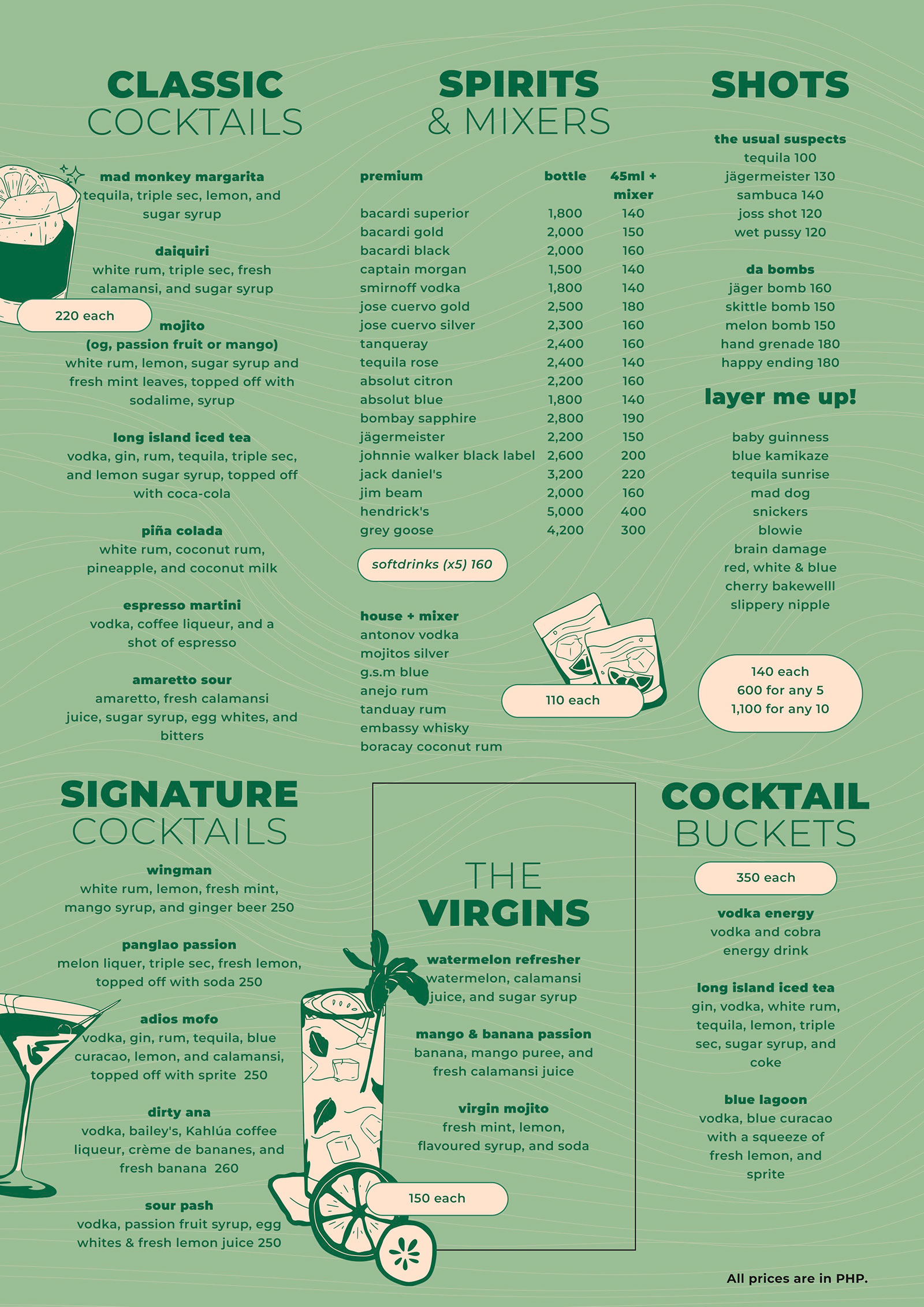 Happy Hour 6 PM - 8 PM Discounted Cocktails 12 PM - 10 PM All day 2FOR1 layered shots promo