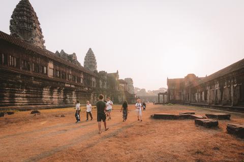 Sunset countryside cycling tour 4:15 AM : Meet in the lobby. The tour guide will be waiting with your breakfast box (travel time to Angkor Park is 30 minutes) Once we pass the ticket booth, the professional tour guide will bring you to the three main temples: Angkor Wat, Bayon, and Ta Prohm As you walk along, the guide will provide detailed historical information about all the temples 12:30 PM : Head back to Mad Monkey