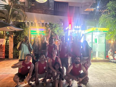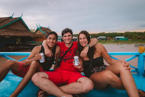 Finally, get ready to Float & Gloat on our river Booze Cruise! The cruise takes place on Tonle Sap Lake, which is the largest freshwater lake in Southeast Asia. During the booze cruise, you will enjoy drinks, music, and a lively social atmosphere while cruising on the lake. It's a great way to meet people, have a swim and enjoy the beauty of Siem Reap on the water.